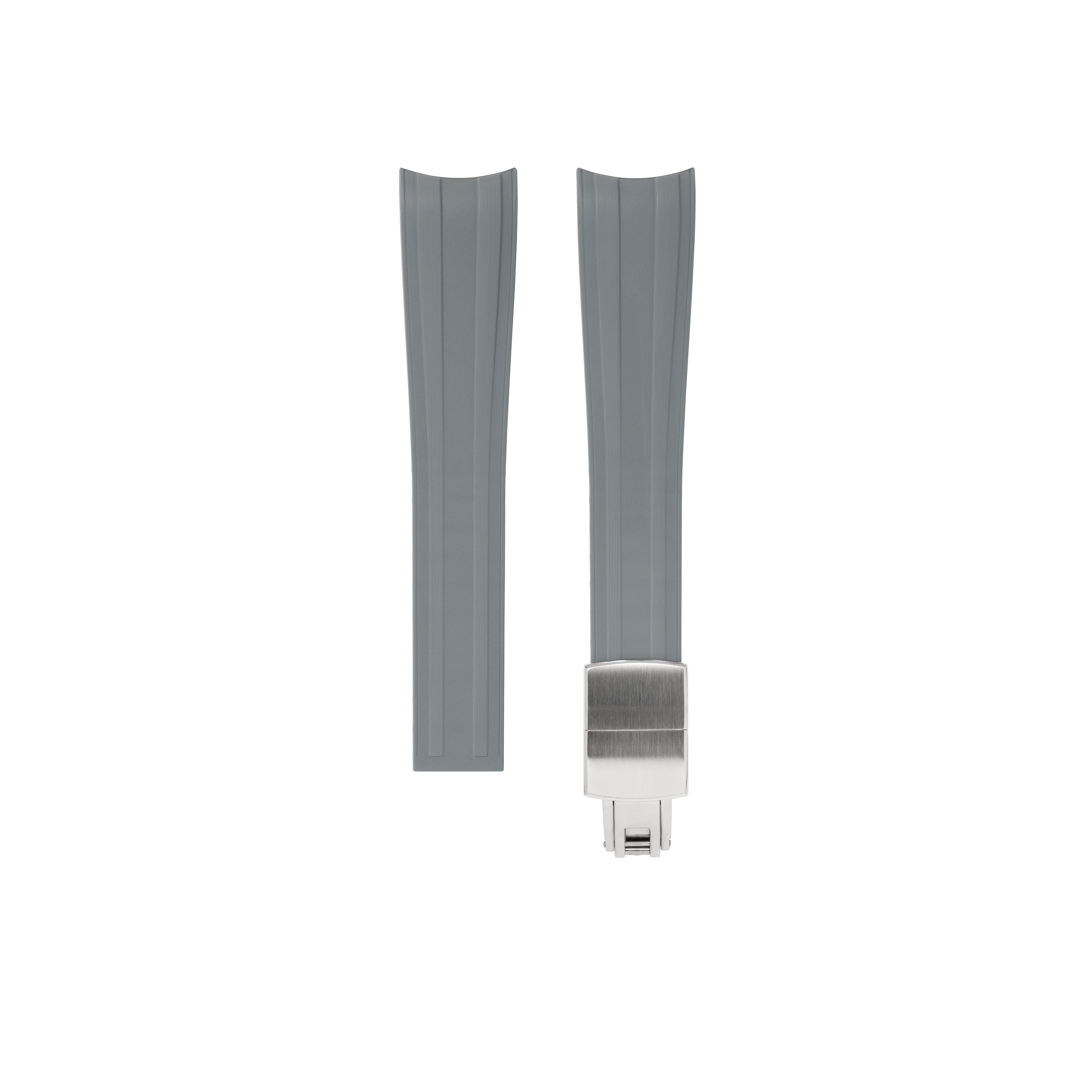 This strap features a double ridge design and a tapered silhouette for a sporty yet elegant look. Each ridge has subtle vertical brushing and a shiny bevel that adds a level of detailing to the strap that perfectly complements your timepiece.